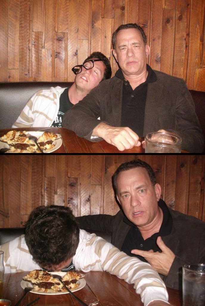 Este hombre estaba en una pizzería y quiso tomarse algunas fotos bastante alocadas con Tom Hanks, ¿y adivinen qué? El actor obedeció, y las imágenes hablan por sí solas.