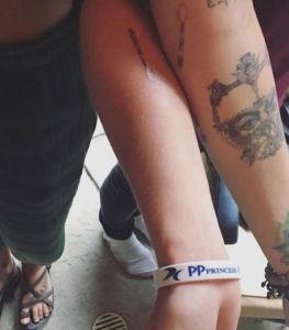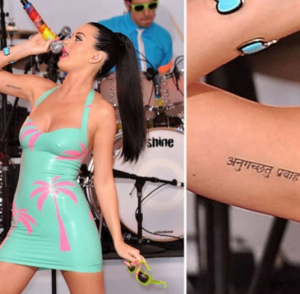 Cuando Perry comenzó a salir con el comediante británico Russell Brand, decidieron hacerse tatuajes idénticos en los bíceps. La inscripción dice “Sigue la corriente” en sánscrito.