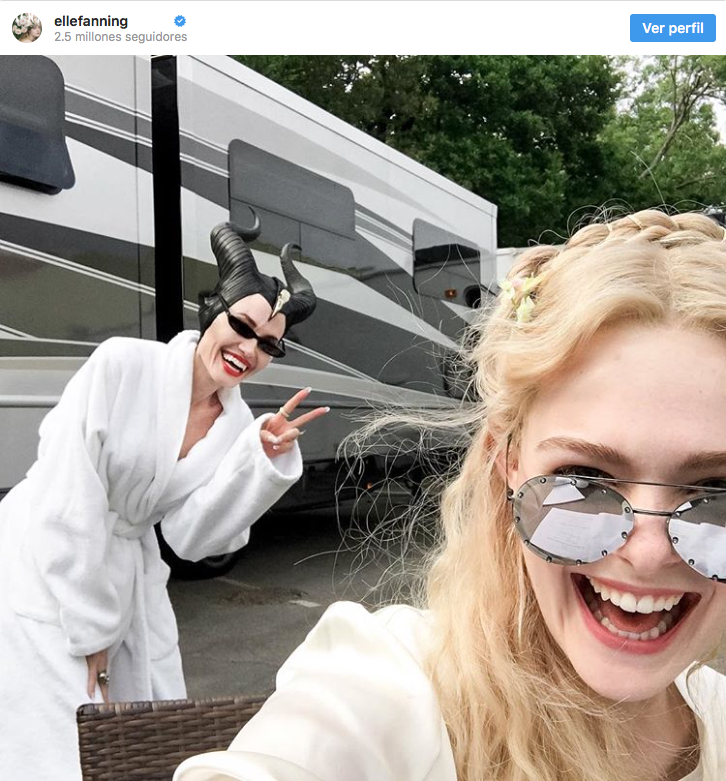 La joven Elle Fanning, quien interpretó a la princesa Aurora en la primera entrega de “Maléfica”, publicó una foto en Instagram en la que sale con Angelina Jolie.