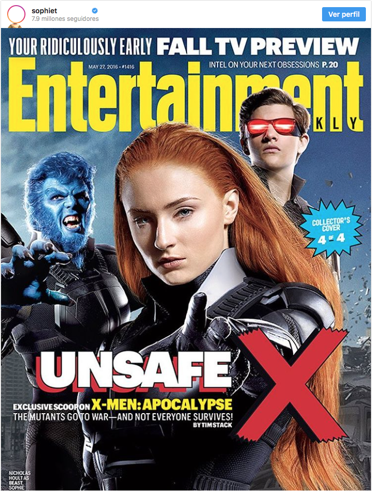 Cabe recordar que Sophie ya apareció en la pantalla en la imagen de la joven Jean Grey, en la película “X-Men: Apocalipsis”.