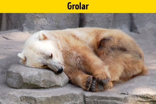 Este peludo se llama grolar (de “grizzly“ y ”polar” en inglés) y es una mezcla de osos pardo y blanco. Curiosamente, no solo existe en cautiverio sino también en la naturaleza salvaje.