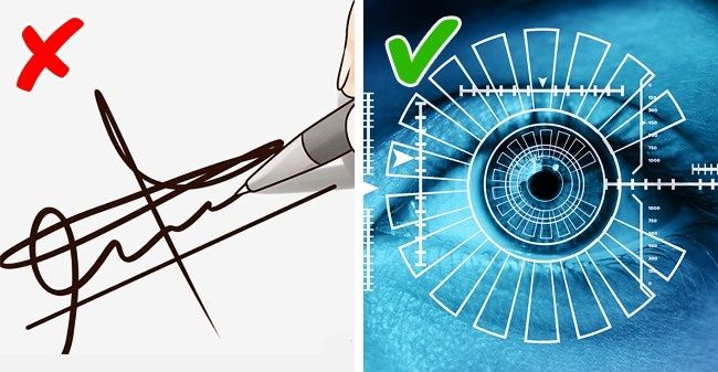As assinaturas logo se tornarão coisa do passado. A biometria, impressão digital e reconhecimento de voz irão substituí-la, pois não há chance de que alguém possa falsificá-los, como fazem com a assinatura.