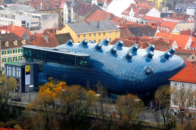 Um dos símbolos da Áustria é o prédio Kunsthaus Graz, um museu de arte moderna que também é chamado de “Alienígena amigável”. Ele se destaca em meio aos edifícios antigos, e, de acordo com a ideia dos designers, este é um tipo de diálogo entre tradição e vanguarda.