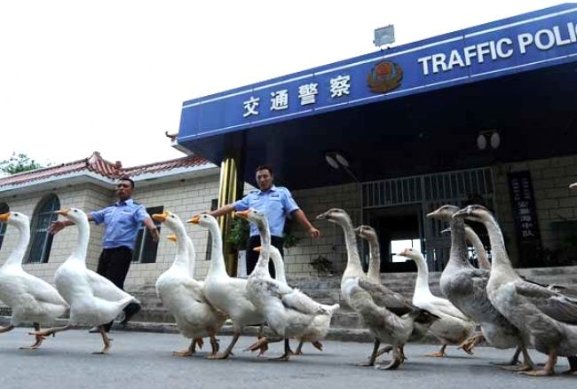 Cão de guarda é coisa do passado na província chinesa de Xinjiang. Por lá, os policiais decidiram inovar na patrulha pela segurança, e agora gansos têm participado das patrulhas oficiais. Isso por que eles são conhecidos por serem extremamente vigilantes e ter uma audição de largo alcance.