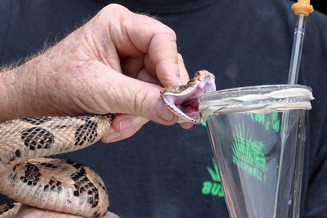 Os profissionais passam o dia todo extraindo o veneno de alguns tipos de cobras em recipientes plásticos. A maioria da extração vai para pesquisas médicas e desenvolvimento de antídotos.