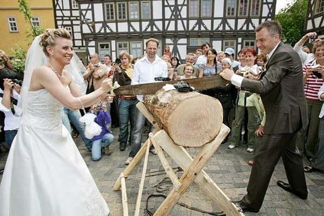 Uma antiga tradição alemã é o corte de um tronco ao meio pelo casal, após o casamento. Esse ato mostra a habilidade do casal de trabalhar em conjunto e superar os obstáculos que podem ocorrer no matrimônio.