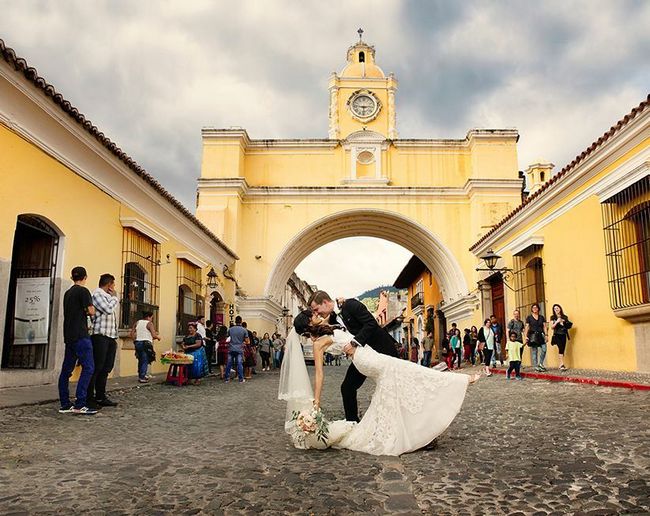 Na Guatemala, após a cerimônia de casamento, uma recepção é realizada na casa do marido. A mãe do marido cumprimenta o casal recém-casado, quebrando um sino branco cheio de arroz, farinha e grãos para representar prosperidade e abundância.