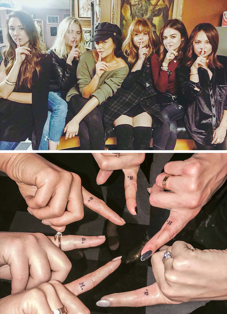 Después del rodaje de la serie Pretty Little Liars, las actrices que actuaron en ella durante 7 temporadas decidieron dejar en sus cuerpos recordatorios inusuales. Las estrellas del show se hicieron tatuajes con las primeras letras de los nombres de sus personajes.