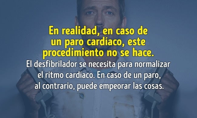 ¿Alguna vez te has puesto a pensar que muchas veces los directores de cine y series de TV van en contra de la verdad solo para que la trama coincida con sus ideas? Resulta que lo hacen muy seguido. Y nosotros, enganchados con lo que nos proponen, se lo creemos todo. Algunas cosas se repiten de película a película, como cuando usan un desfibrilador en caso de un paro cardiaco.