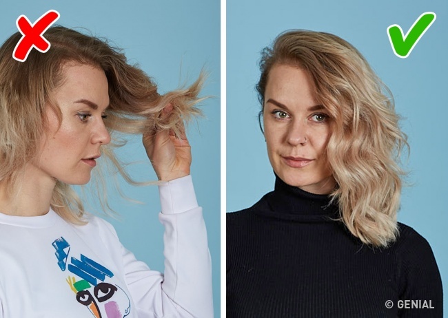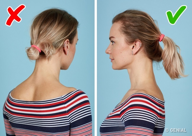 ¿Qué hacemos normalmente, si el cabello molesta, pero no tienes tiempo para peinarte? Lo recogemos en un extraño moño que se asemeja al peinado de cola de caballo, pero con mechones saliendo por diferentes lados. Esta opción es buena si estás en casa, cuando nadie te ve, pero es poco probable que la sociedad reaccione bien.