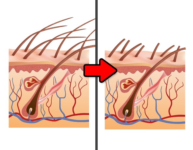 Na realidade: após cortar a parte externo do pelo, uma parte com a ponta plana, não em forma de cone, fica para fora. E isso cria a sensação de que o pelo ficou mais grosso.