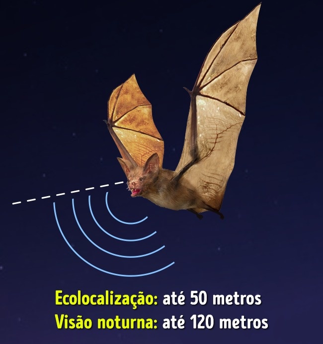 Na realidade: embora os morcegos usem a ecolocalização para se orientar no espaço, eles usam a visão quanto estão sob certo nível de iluminação.