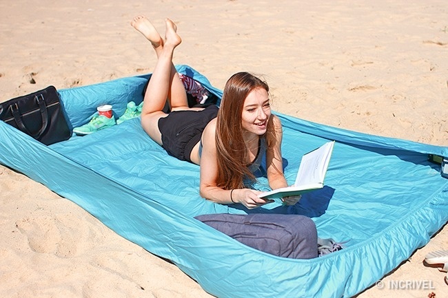 O que fazer. Para que o vento não leve areia para dentro de seus calçados, roupa e demais objetos, em vez de uma toalha de praia ou canga, use uma capa para colchão com elástico. Assim você poderá deitar sobre ela e ainda manter suas coisas a salvo da areia.
