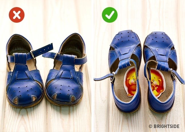 Kids often have trouble telling left from right, and so they mix up their shoes. Just place half a sticker in each shoe. Your little one can match up the sticker and get their shoes on the correct feet.