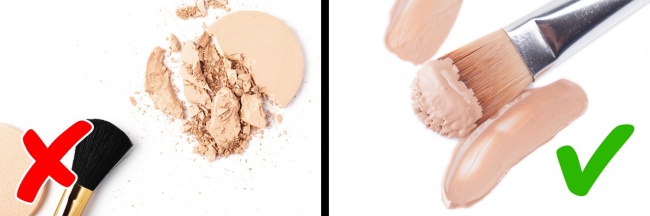 Se você precisa estar maquiada o dia todo, experimente este truque: aplique pó entre o primer e a base. Pode parecer estranho, já que os maquiadores profissionais não recomendam colocar produtos em pó sobre líquidos, porém, ao aplicar pó translúcido sobre o primer é mais fácil evitar que a base escorra e acabe com a maquiagem. Cuidado! Não coloque muito pó para que a base não fique excessivamente espessa.