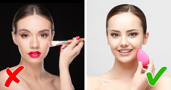 Se não tiver cravos e espinhas ou áreas muito secas, qualquer pincel ou esponja de maquiagem podem servir para você. Lembre-se apenas que é mais fácil aplicar camadas de base com uma esponja, enquanto que, com pincéis, será necessário escolher o correto, já que pincéis diferentes oferecem diferentes efeitos e coberturas. Se tiver poros mais dilatados, o ideal seria usar um pincel chanfrado, que dá melhor cobertura e disfarça o problema. A base pode ser aplicada com a mão se você não tiver problemas de pele, porém, neste caso, é mais difícil dar a cobertura necessária.