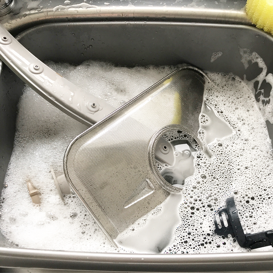 Pedaços de comida e gordura podem ficar presos em todos os lugares dentro de sua máquina de lavar louça. Limpar a sua máquina de lavar louça é fácil. Esvazie-a, cubra o fundo com uma xícara de bicarbonato de sódio, deixe descansar durante a noite e lave com vinagre. Você também pode limpar as partes individuais de dentro dela.