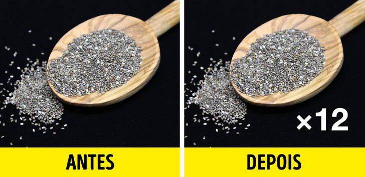 As sementes de Chia podem absorver uma quantidade de água que excede sua massa de 11 a 12 vezes, ajudando a encher o estômago e contribuindo para a sensação de saciedade. Além disso, também reduz o apetite.