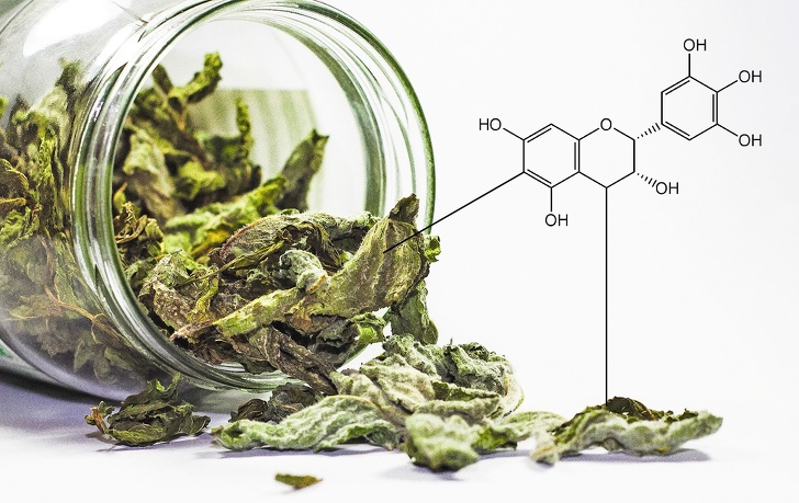 O chá verde contém duas substâncias que contribuem para a perda de peso: cafeína e catequina (particularmente epigalocatequina galato). A primeira ajuda a reduzir a gordura e suprime o apetite, a segunda acelera o metabolismo e contribui para a eliminação da gordura. A combinação dessas duas substâncias no extrato de chá verde faz com que o corpo queime calorias de forma mais eficaz. Assim, as pesquisas mostraram que o consumo de cafeína e epigalocatequina galato ajudou a aumentar a perda de calorias em 4%.