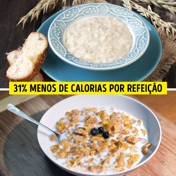 Claro, não é sobre a aveia solúvel no envelope, mas a aveia normal. Ela contém muita fibra, o que permite que você fique satisfeito por mais tempo. Além disso, as pesquisas mostraram que as pessoas que tomavam café da manhã com aveia não tinham tanta fome e, ao comer, consumiam 31% menos do que as que comiam cereais.