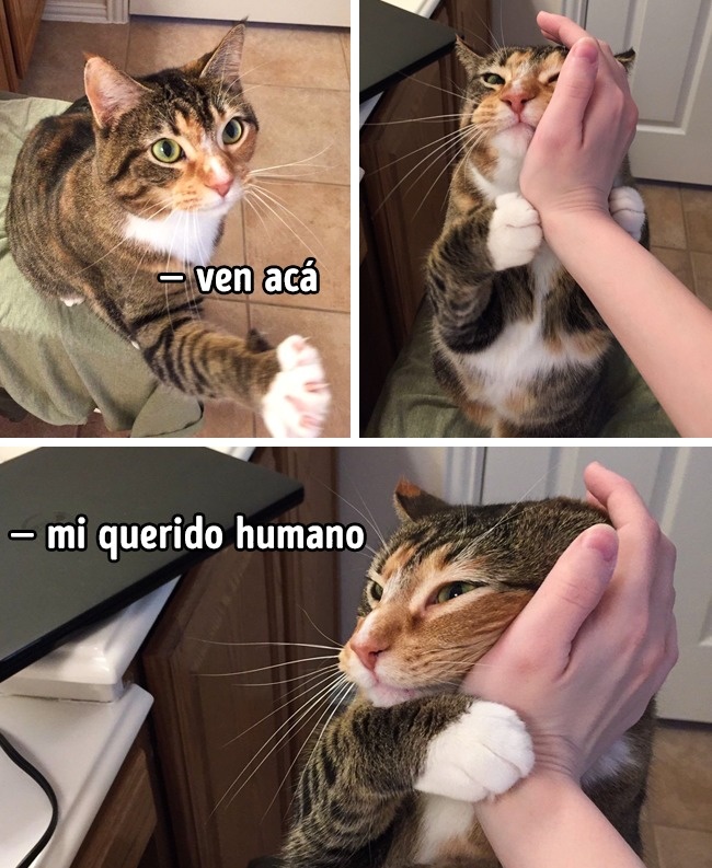 ¿Se enreda entre tus pies, sube a tu hombro y salta encima de tus manos apenas te sientas? Tu gato te está exigiendo cariño, amor y atención. Quiere estar más cerca tuyo. Mucho más cerca. Y más aún.