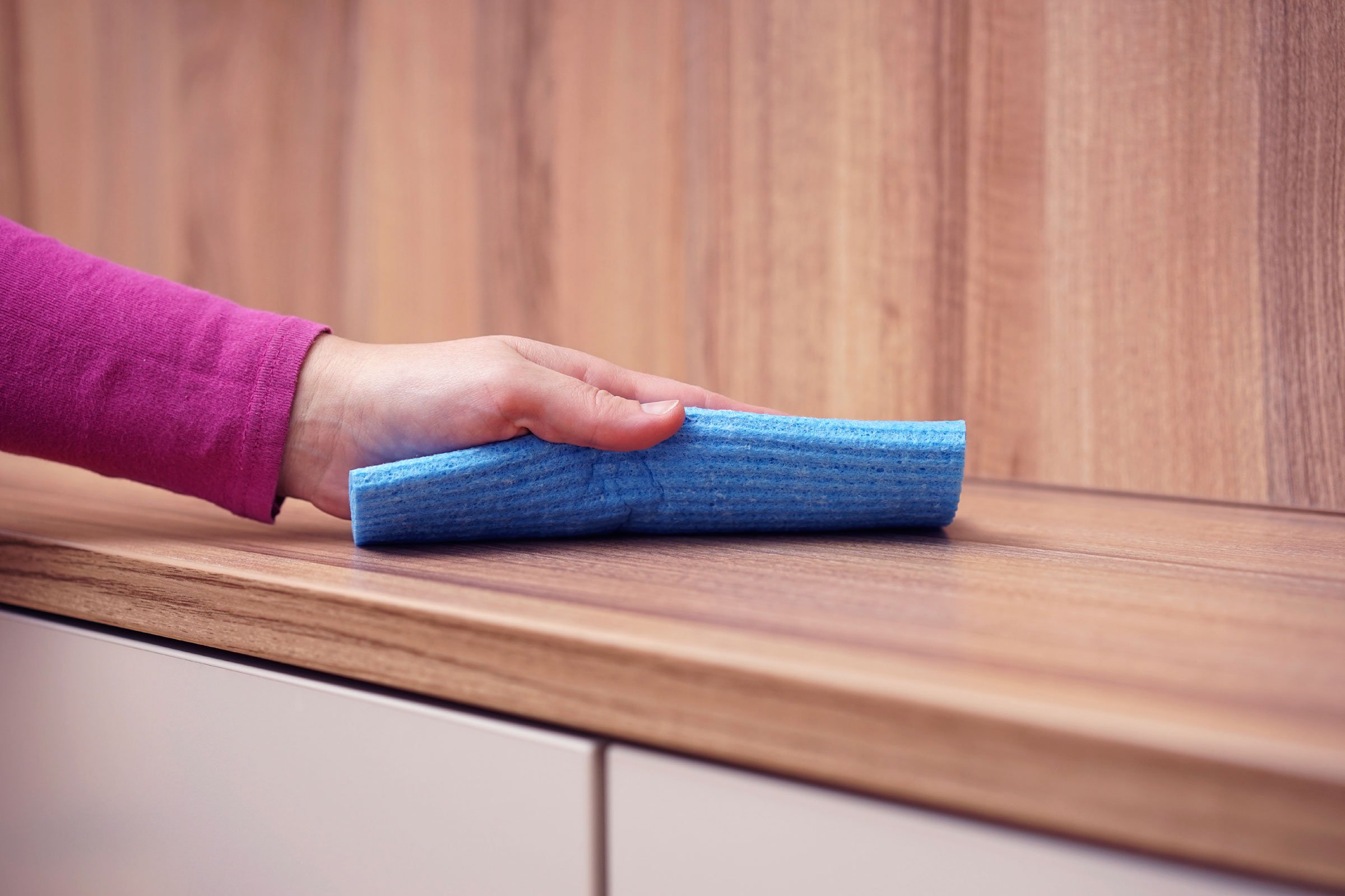 Don’t use vinegar. The acid in it will pit your polyurethane finish, can void your warranty, and may reduce shine over time. Quit falling for these other cleaning myths homeowners still believe.