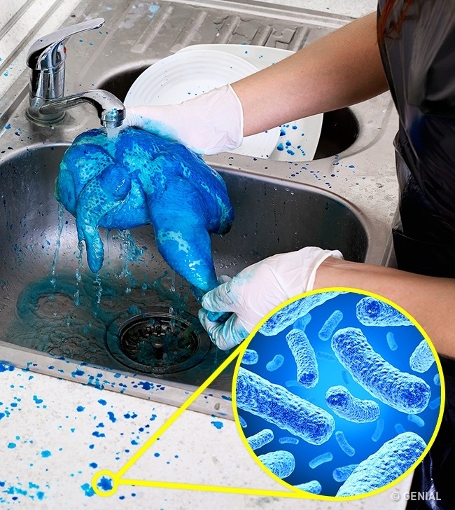 Las bacterias, tratadas con calor, mueren. Sin embargo, si lavas la carne en agua corriente, se extienden por todas partes. Conclusión: no laves la carne antes de cocinarla. Sólo cocínala muy bien.
