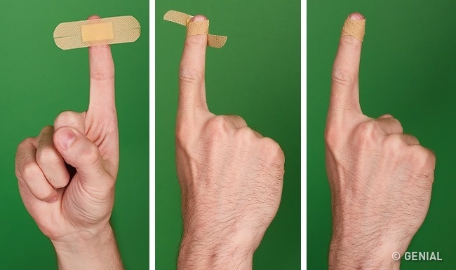 Normalmente, cuando colocamos una bandita en un dedo, esta se despega rápidamente. Para evitar esto, haz dos pequeños cortes en las partes laterales y fija la bandita cruzándolos.