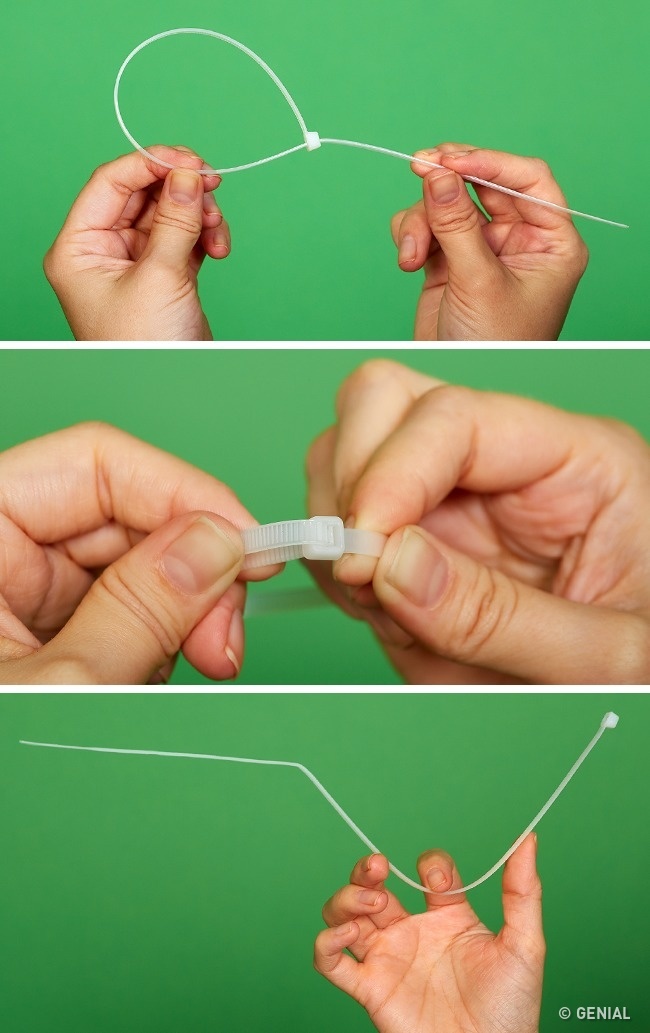 Cuando nos encontramos con estos lazos de plástico, lo primero que se tiende a hacer es cortarlo, bien con un cuchillo o con unas tijeras. Pero resulta que sólo hay que tirar del pestillo e ir sacando hacia fuera el lazo. Así se desbloquea.