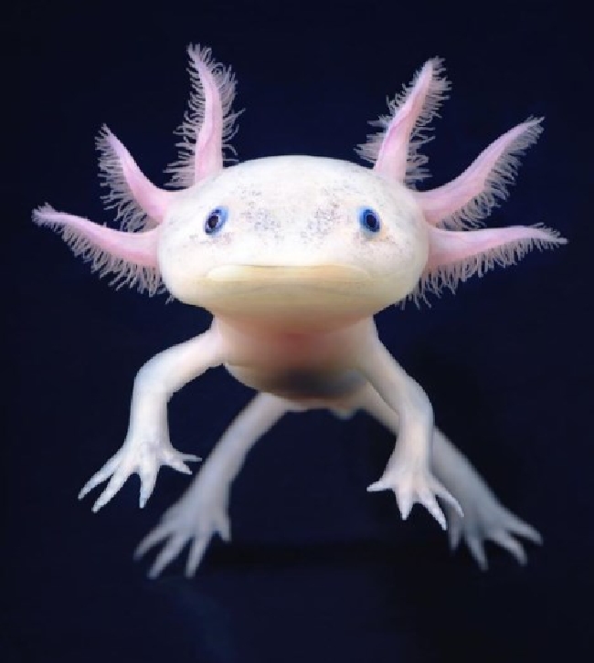O axolotle, também conhecido como axolote, é uma espécie de salamandra e tem a capacidade de restaurar partes perdidas de seu corpo.