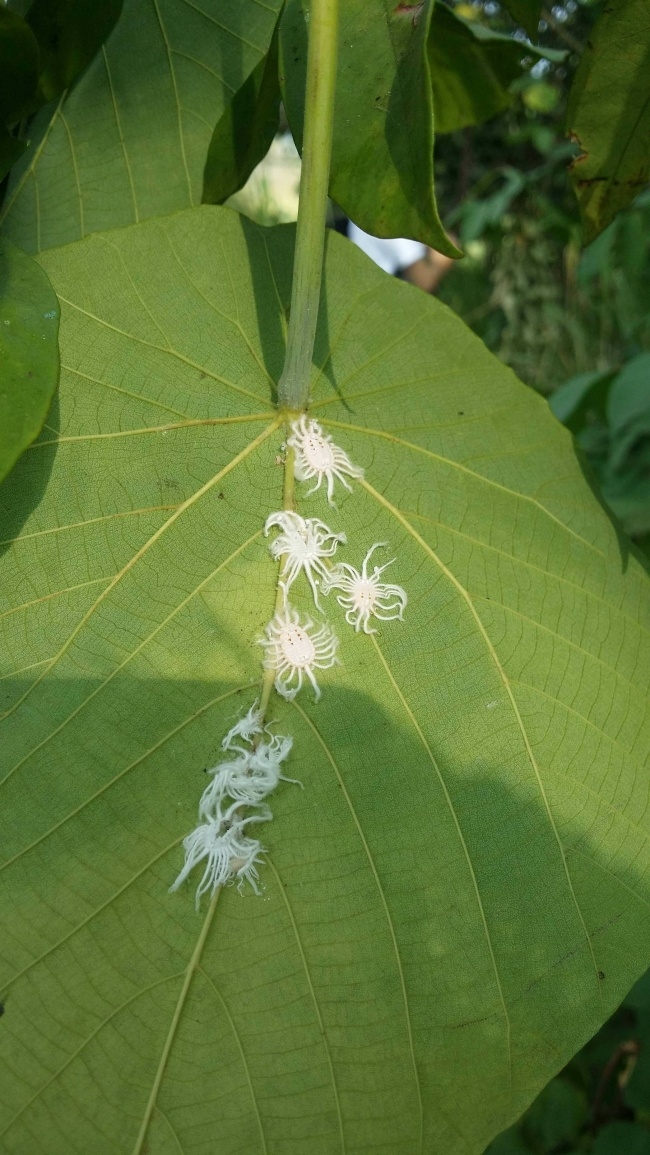 Algumas espécies de insetos colocam ovos nos ramos e nas folhas das plantas, resultando nesta formação.
