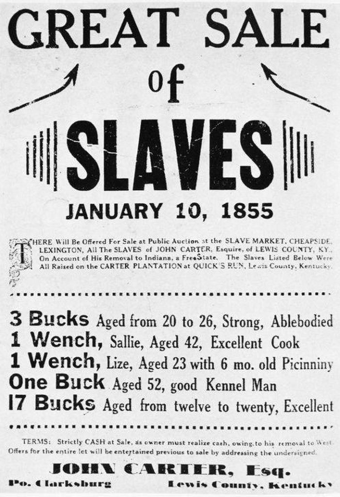 Solo un par de cientos de años atrás en los EE.UU. (y no solo allí) vendían personas vivas como ganado, y este anuncio no se destacaba entre otros que ofrecían, por ejemplo, un servicio de peluquería o la compra de un conjunto de muebles usados.