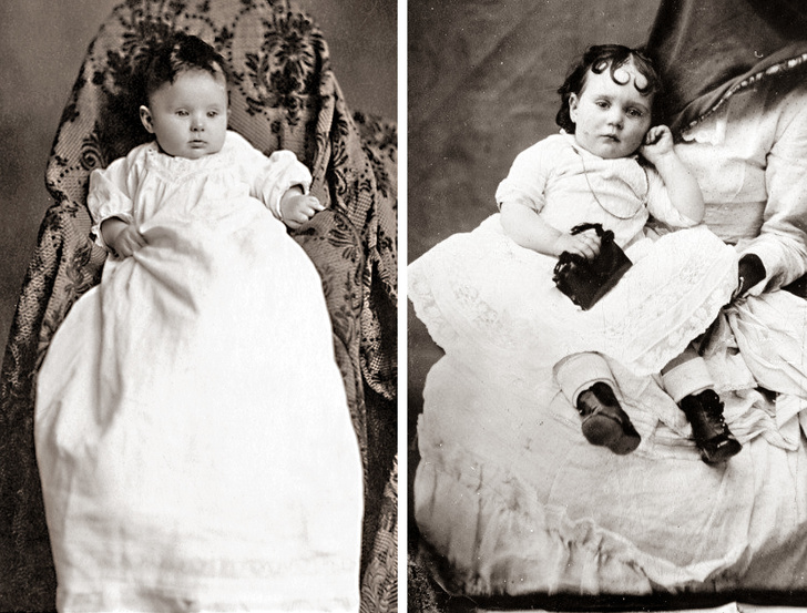 “Madres fantasmas” fue un género de fotografía británica que existió hasta la década de 1920. En ese momento, el proceso fotográfico podría durar varios minutos, y los niños pequeños a menudo comenzaban a llorar y gatear en el marco. Luego, comenzaron a sentar a los niños sobre sus madres, pero como la foto tenía que capturar solo al niño, arrojaban una tela sobre la madre, “convirtiéndola” en una especie de sillón. A veces, este método fue utilizado para crear fotografías de difuntos.