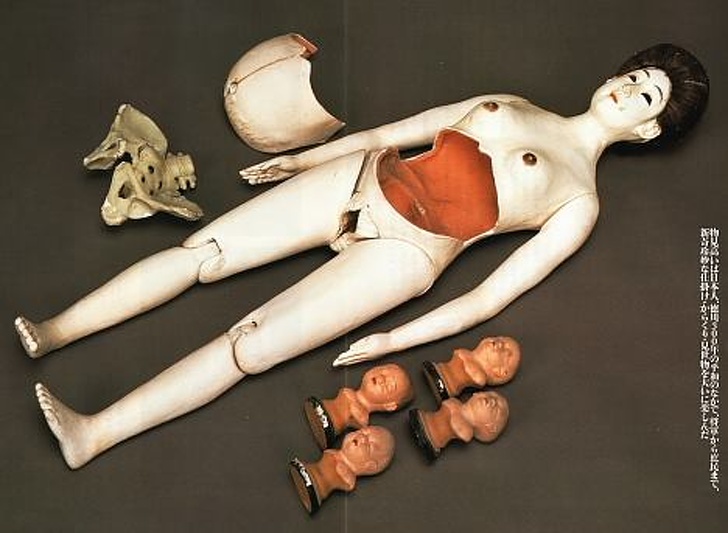 Esta muñeca no es para nada un análogo de la Barbie embarazada, sino solo un modelo para el entrenamiento visual de parteras. El kit incluye la muñeca en sí, una panza pegada con estrías dibujadas y varios fetos intercambiables en diferentes etapas de desarrollo. Además, las muñecas se utilizaron como una atracción, diseñada para revelar algunos secretos de la vida humana para el público educado.
