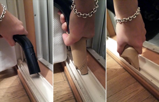 Às vezes, até mesmo as pontas mais finas dos aspiradores de pó não conseguem alcançar os cantos. Esse problema pode ser resolvido com um cilindro de cartolina, ou mesmo com o rolo do meio do papel higiênico. Coloque no aspirador de pó e molde da maneira mais indicada.