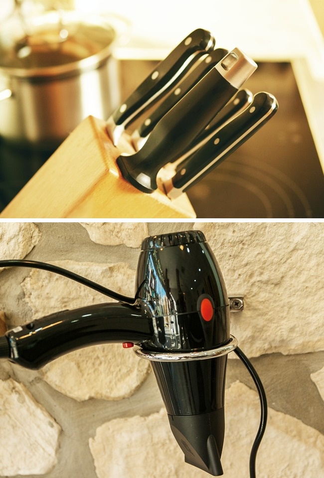 Nunca nos esquecemos de lavar os pratos, mas quase nunca pensamos no suporte de facas. Nele também se acumula muita sujeira. Você pode usar um aspirador ou até mesmo um secador de cabelo, jogando a sujeira acumulada para fora.