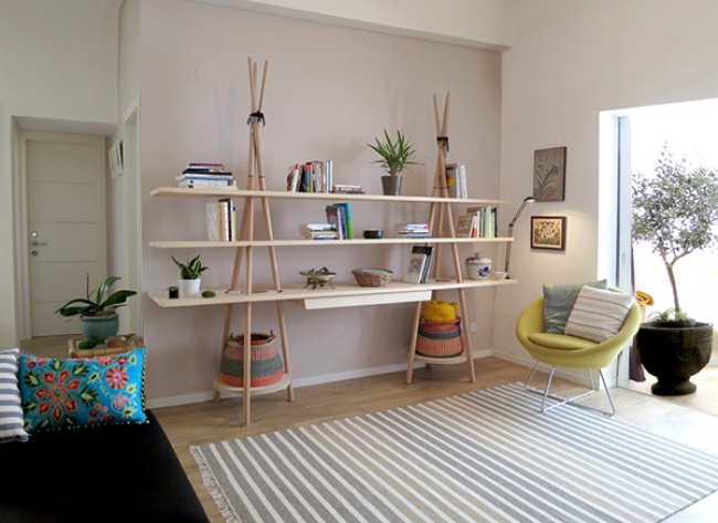 Em apartamentos pequenos é muito importante que os móveis sejam multifuncionais. Por exemplo, uma escrivaninha que pode servir como criado-mudo ou como um móvel para armazenar objetos.