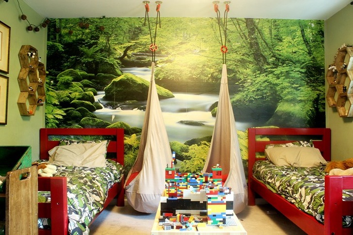 Incluso en una ciudad grande puedes sentirte como el habitante de una verdadera jungla, el papel tapiz de la foto y las sábanas permitirán mudarse a los rincones más lejanos del planeta sin salir de la recámara de los niños.