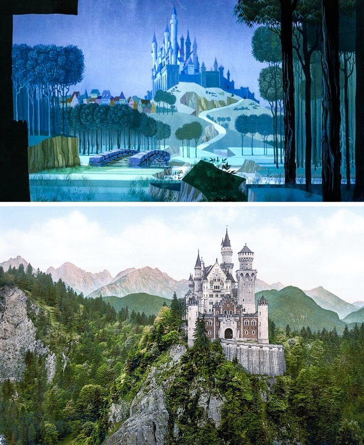 El castillo en donde vive la princesa Aurora fue diseñado en base a la edificación alemana de Neuschwanstein, ubicada en Baviera.