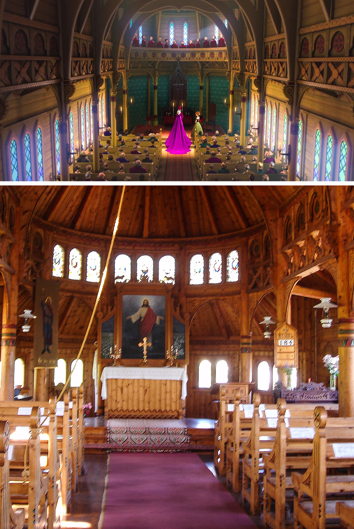 El lugar en donde Elsa es coronada como reina, llamada Capilla de Arendelle, fue dibujada siguiendo retratos de la Catedral de San Olaf (sí, ¡Olaf!).