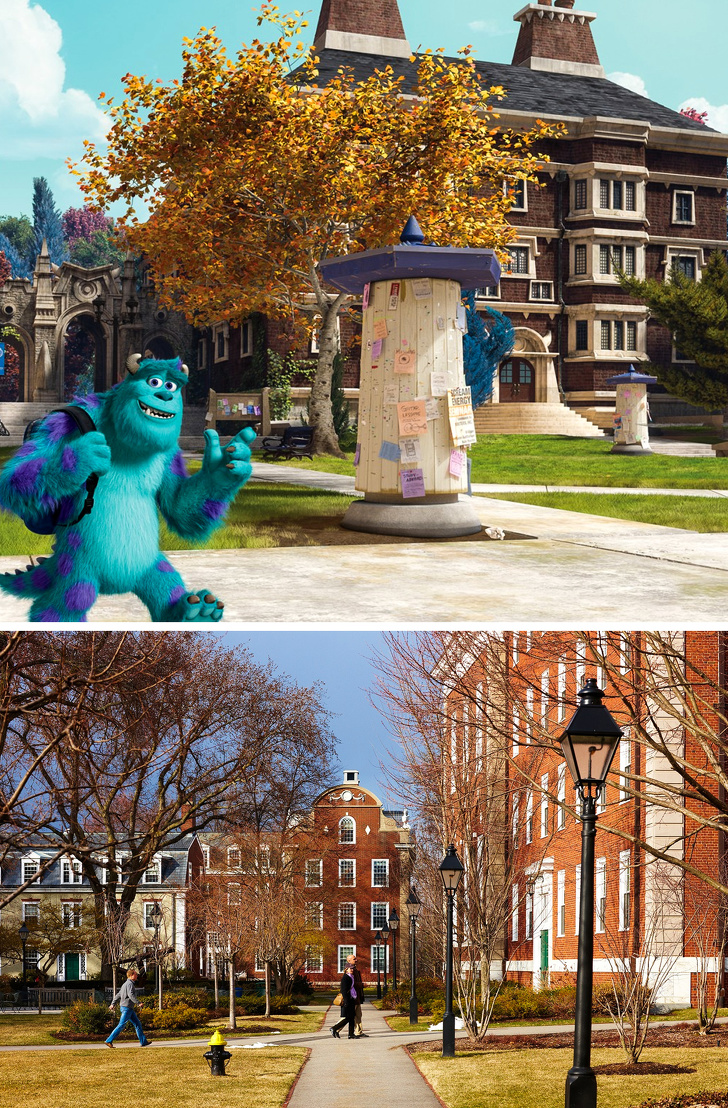 La secuela de “Monsters Inc.” tiene lugar en las instalaciones de una universidad en donde los monstruos deben superar ciertos desafíos para convertirse en verdaderos asustadores, pero este centro de estudio está inspirado en las universidades de Harvard y Stanford.