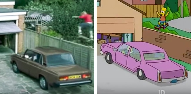 Lo puedes descubrir si miras el intro (Capítulo 15, Temporada 17). Los personajes fueron sustituidos por las personas realesy el público logró notar no sólo cómo se ven los personajes principales, sino también qué auto conduce Homero Simpson: es una Lada 2105.