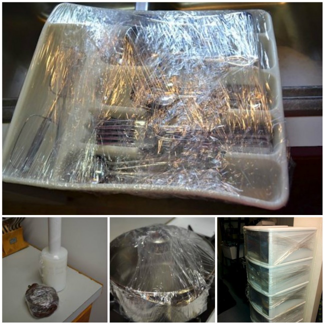 Instead of having to remove the entire contents of a chest of drawers or cupboard when moving house, you can simply wrap it up in layers of food wrap. That way nothing inside will fall to pieces or come undone, and everything will reach its new destination intact — and can be easily opened just as it was.