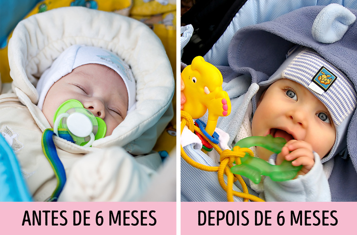 Após seis meses, os dentes do bebê começam a crescer, por isso será melhor substituir a chupeta