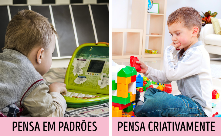 Dê preferência a brinquedos mais tradicionais, como bonecas, carros e bloquinhos de montar ou encaixar. Divida as funções de um brinquedo multifuncional: um instrumento que faça música, um carrinho que responda pelos movimentos e jogos de tabuleiro, para exercitar a lógica.