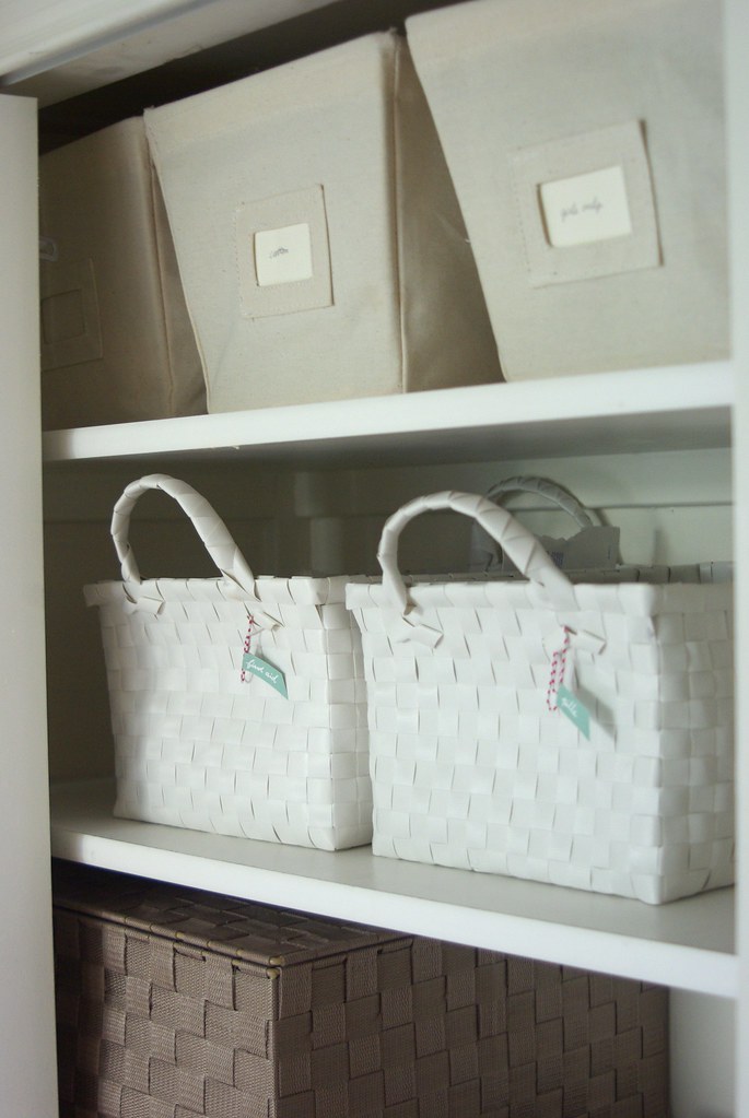 Usa cajas con etiquetas para resolver el problema de los estantes desordenados
