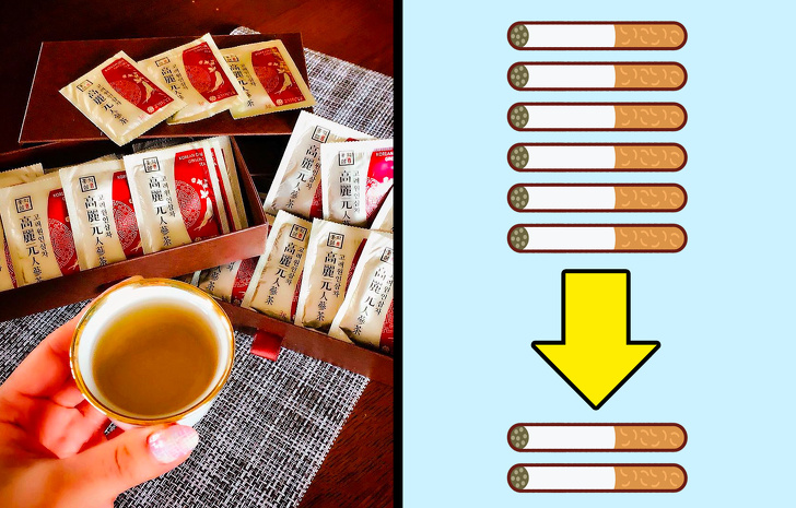 O chá de ginseng é excelente para quem deseja parar de fumar, pois enfraquece o efeito da dopamina, que ocorre no cérebro de um fumante após cada cigarro fumado. Desta forma, a pessoa não recebe seu prazer habitual no processo de fumar. Com o consumo regular desse tipo de infusão, a vontade de fumar diminui significativamente.