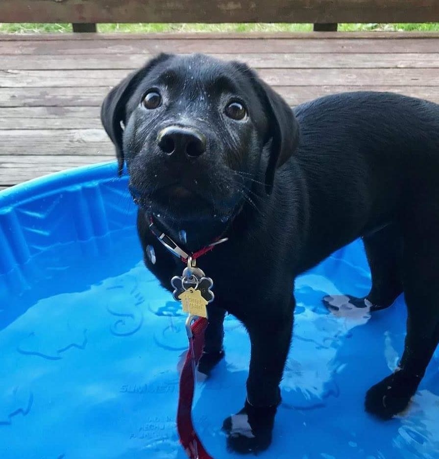 10. En el verano hay piscinas para cachorros y la primera vez que Sterling se dio un chapuzón es que no podría haber ido mejor.