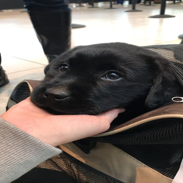 12. Aunque a la mayoría de los cachorritos no les importa viajar “a pata”, otros puede que viajen mucho más lejos. ¡Es la primera vez que este cachorrito viaja en avión!