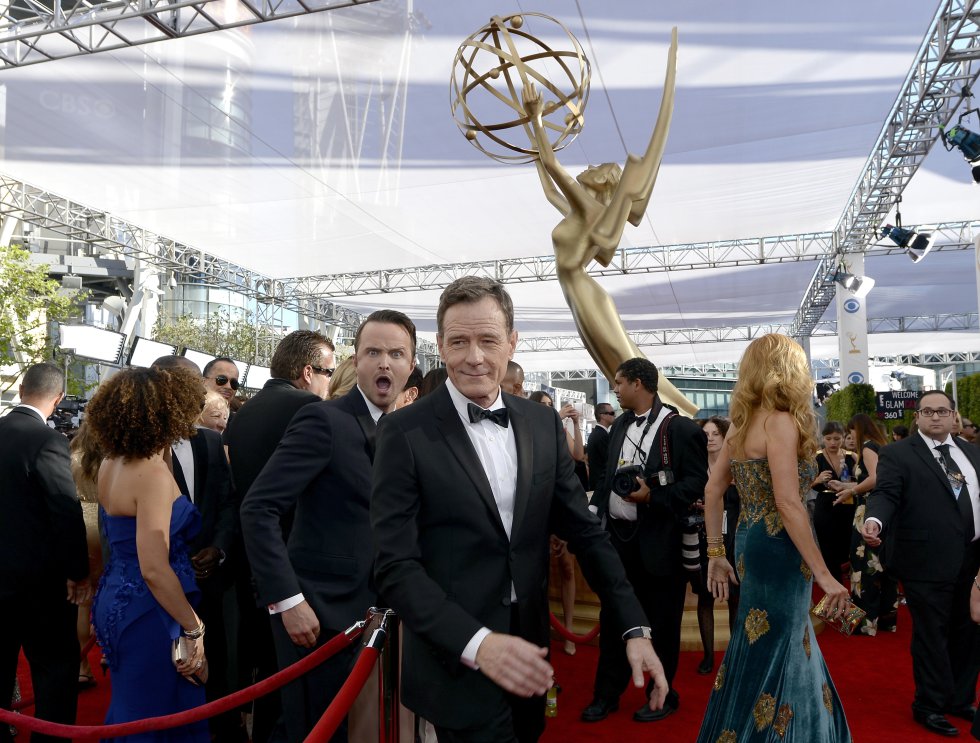 7. Bryan Cranston, a su llegada a la alfombra roja de los premios Emmy. A sus espaldas, el intérprete Aaron Paul, su compañero en la serie ‘Breaking Bad’